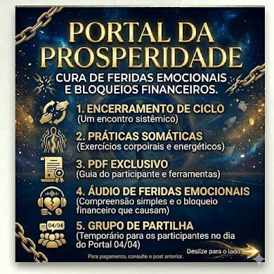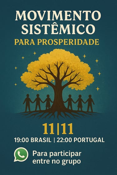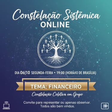 Através da Constelação Familiar em grupo, olhamos juntos para as dinâmicas que influenciam relacionamentos, emoções e prosperidade, permitindo que a vida volte a fluir com mais leveza e sentido.